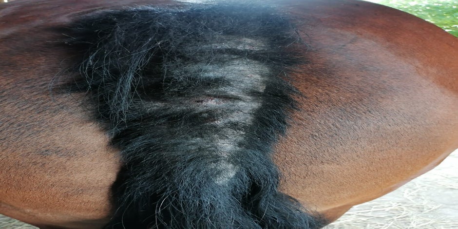 Bild 4+5 aufgenommen am 3.Juli; die Mähne ist bereits verheilt , weniger Juckreiz