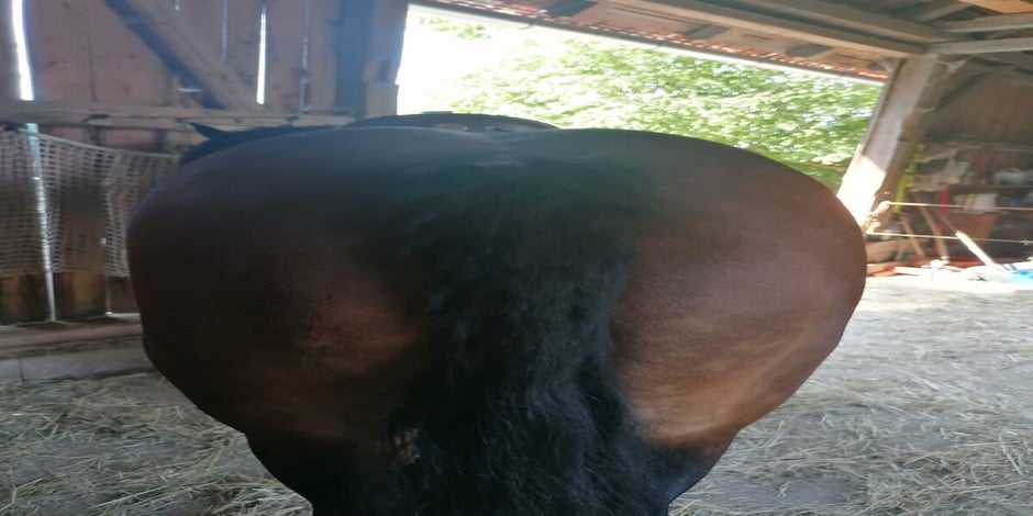 Bild 6 ,aufgenommen am 4.August, Schweifhaare bereits regeneriert , keine offenen Stellen mehr, kein oder kaum Juckreiz